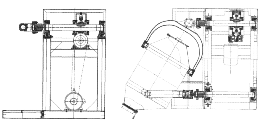 容器回轉(zhuǎn)型的特點是混合機的儲料槽連續(xù)旋轉(zhuǎn),從而導致槽內(nèi)物料混合均勻,此類混合機結(jié)構(gòu)簡單,混合速度慢,混合度較高,混合機內(nèi)部清掃容易。適用于那些物性差異小、流動性好的粉體間的混合,也適用于有磨損性的粉粒體的混合。其結(jié)構(gòu)如圖所示: